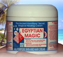 【エジプシャンマジッククリーム(EGYPTIAN MAGIC CREAM)】 古代エジプトの医療の神と崇められたイムホテップの処方をオリジナルとしたオーガニック化粧品です。最近人気のロハスな生活に合う生命の力強さを感じるコスメです。ハチミツ、ミツロウ、プロポリスなどにオリーブ油を加え、合成保存料、合成着色料など化学薬品を一切使用していない、100 %天然素材で作られたオーガニッククリームです。マドンナはこのクリームなしでは外出しない」といわれるほど。ハリウッドの有名人はもちろん、キャメロン・ディアスやクリスティーナ・リッチのメイクアップアーティスト、グッチ・ウェストマン(2005年よりランコム メイクアッププロデューサー)は、いつもメイクアップバッグ携帯しています。また、2004年のエミー賞にも選ばれた実績も持ち、米国ベストセラー商品です