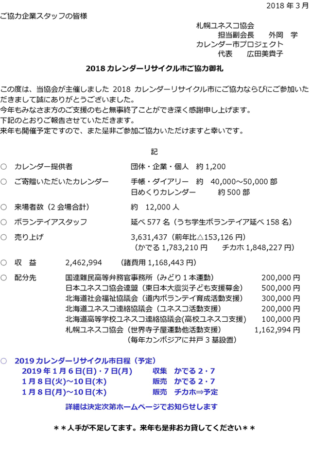 〇ユネスコカレンダーリサイクル市
