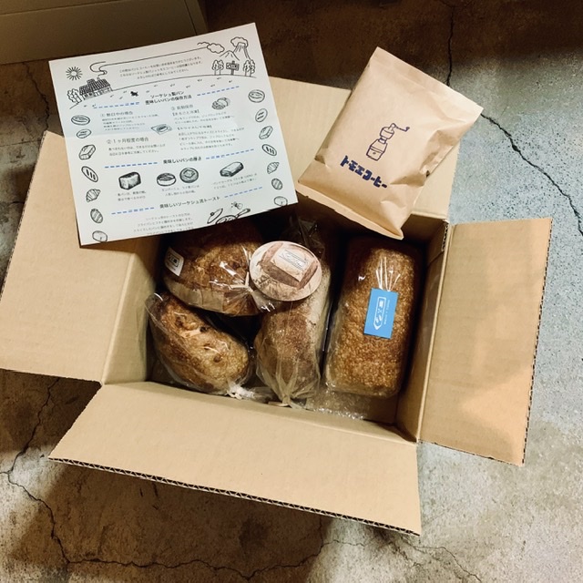パン4種(食パン/パン・ド・カンパーニュ/イチジク/レーズンとクルミ)とコーヒー豆
